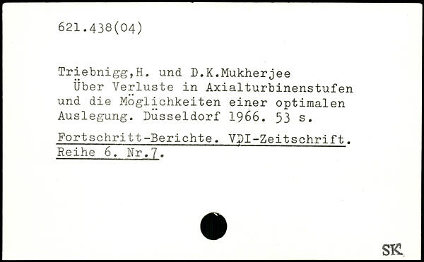 Über Verluste in Axialturbinenstufen und die Möglichkeiten einer optimalen Auslegung. Dusseldorf 1966.