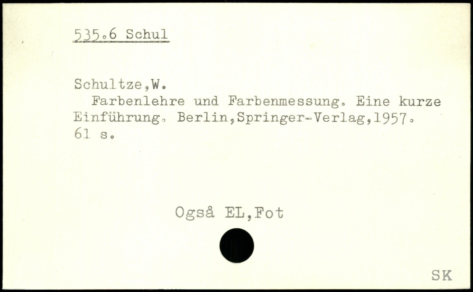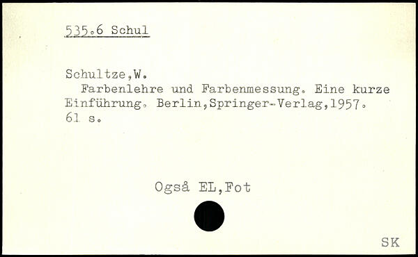Farbenlehre und Farbenmessung, Eine kurze Einführung, Berlin,Springer-Verlag,1957, 61 s , Ogsä EL,Fot