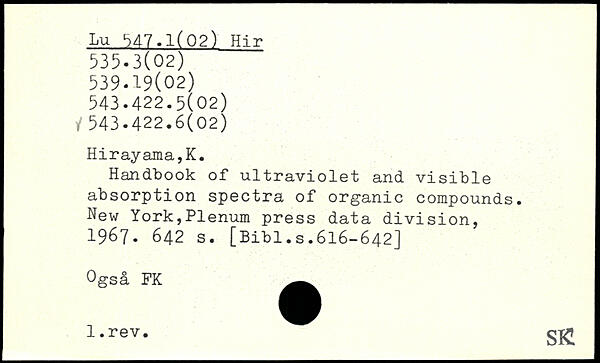 Handbook of ultraviolet and visible absorption spectra of organic compounds.