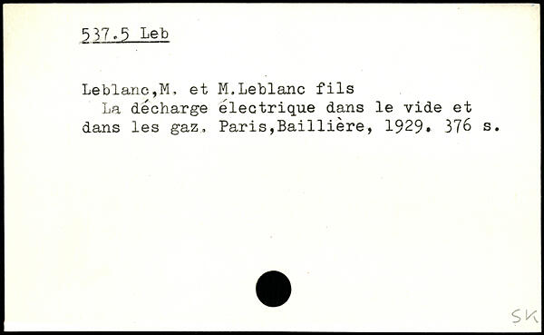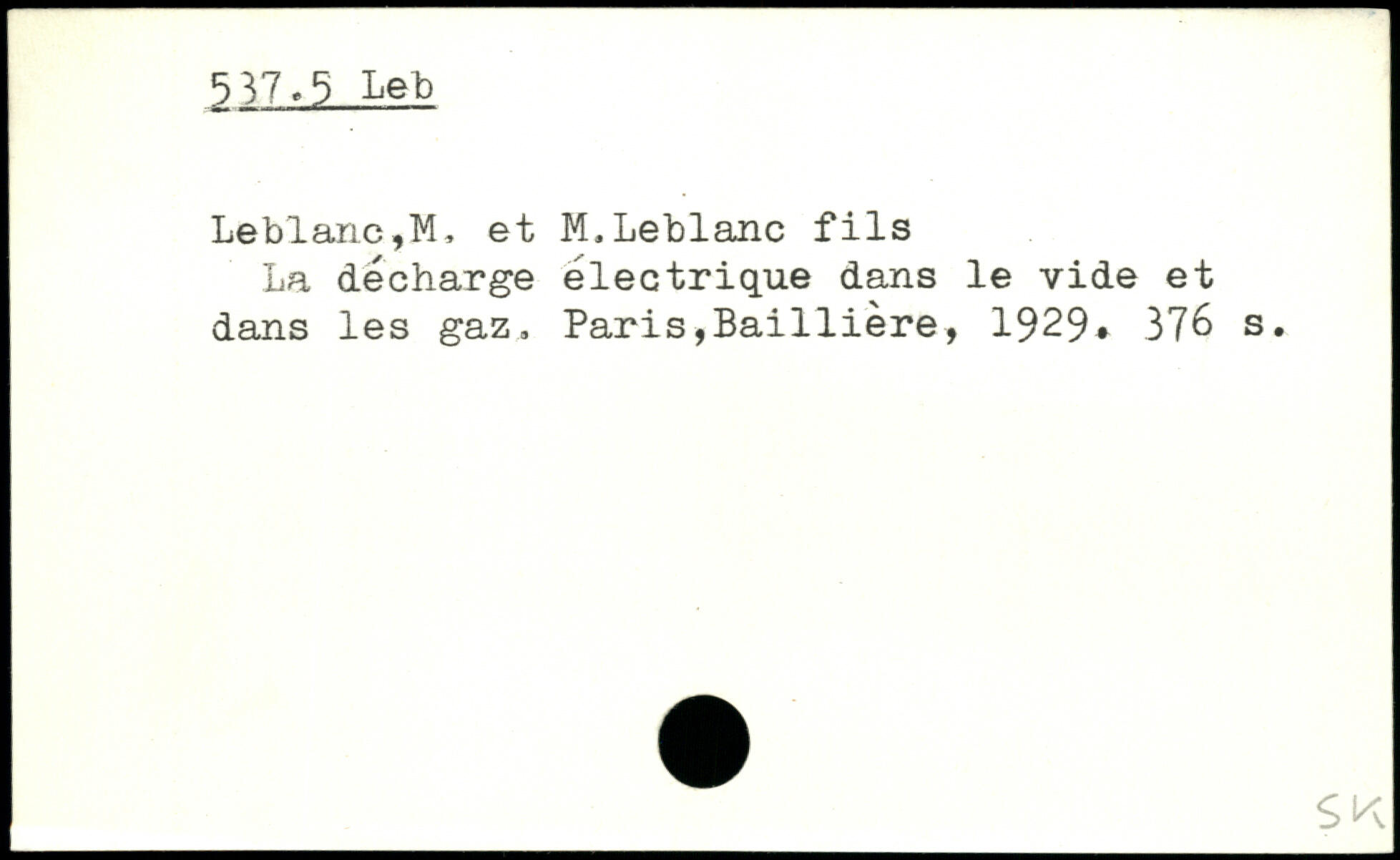 Leblanc,M, et M,Leblanc fils La décharge électrique dans le vide et dans les gaz, Paris,Ba1111ère, 1929.