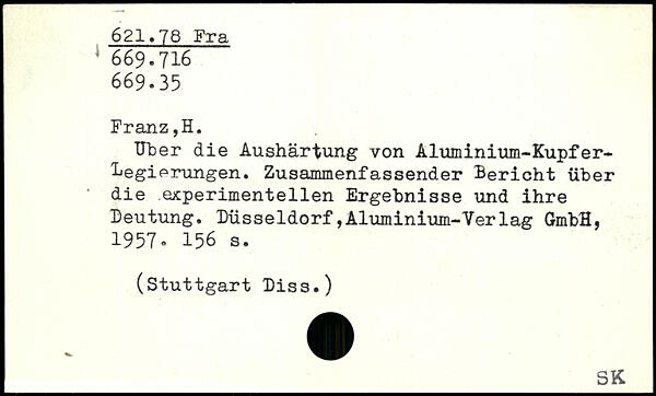 Uber die Aushärtung von Aluminium-Kupfer-Legierungen. Zusammenfassender Bericht über die experimentellen Ergebnisse und ihre Deutung.