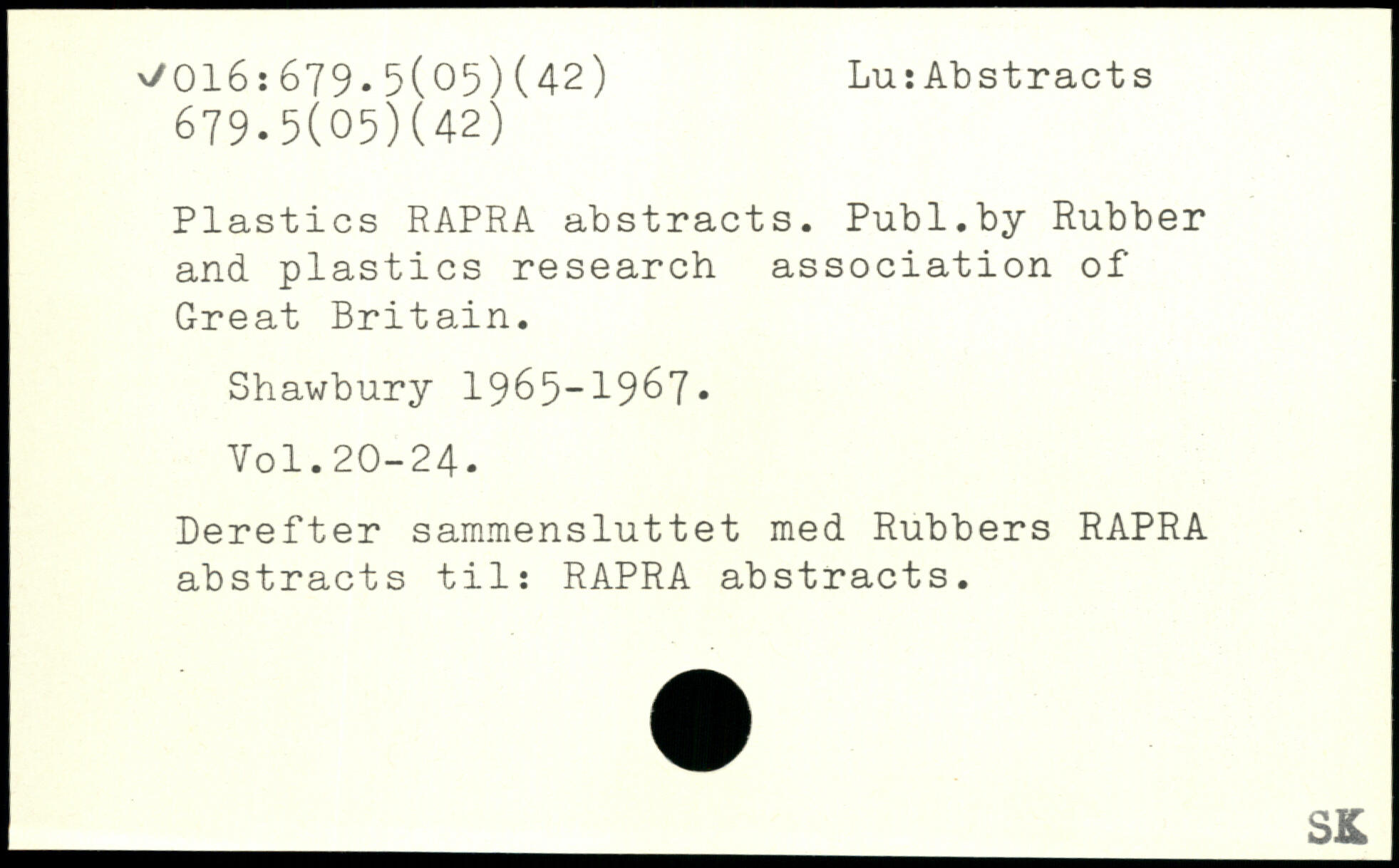 Plastics RAPRA abstracts.