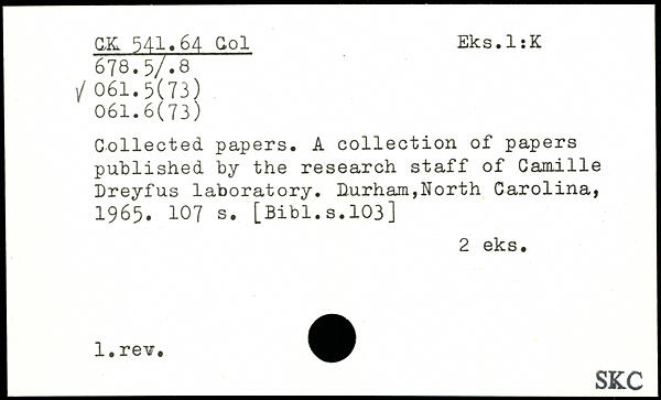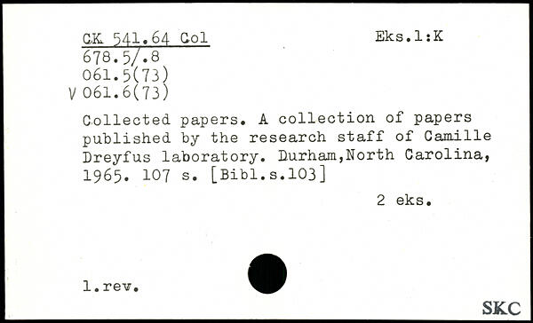 UDK: 541.64 Col, 678.5/.8, 061.5(73), 061.6(73)