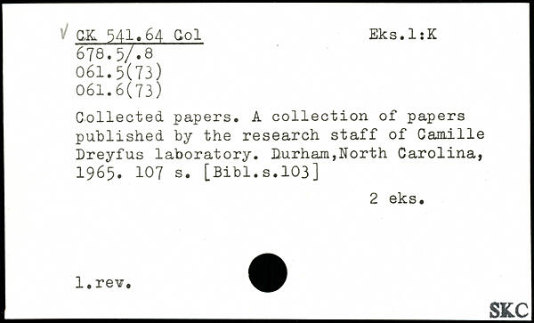 Collected, papers. A collection of papers published by the research staff of Camille Dreyfus laboratory.