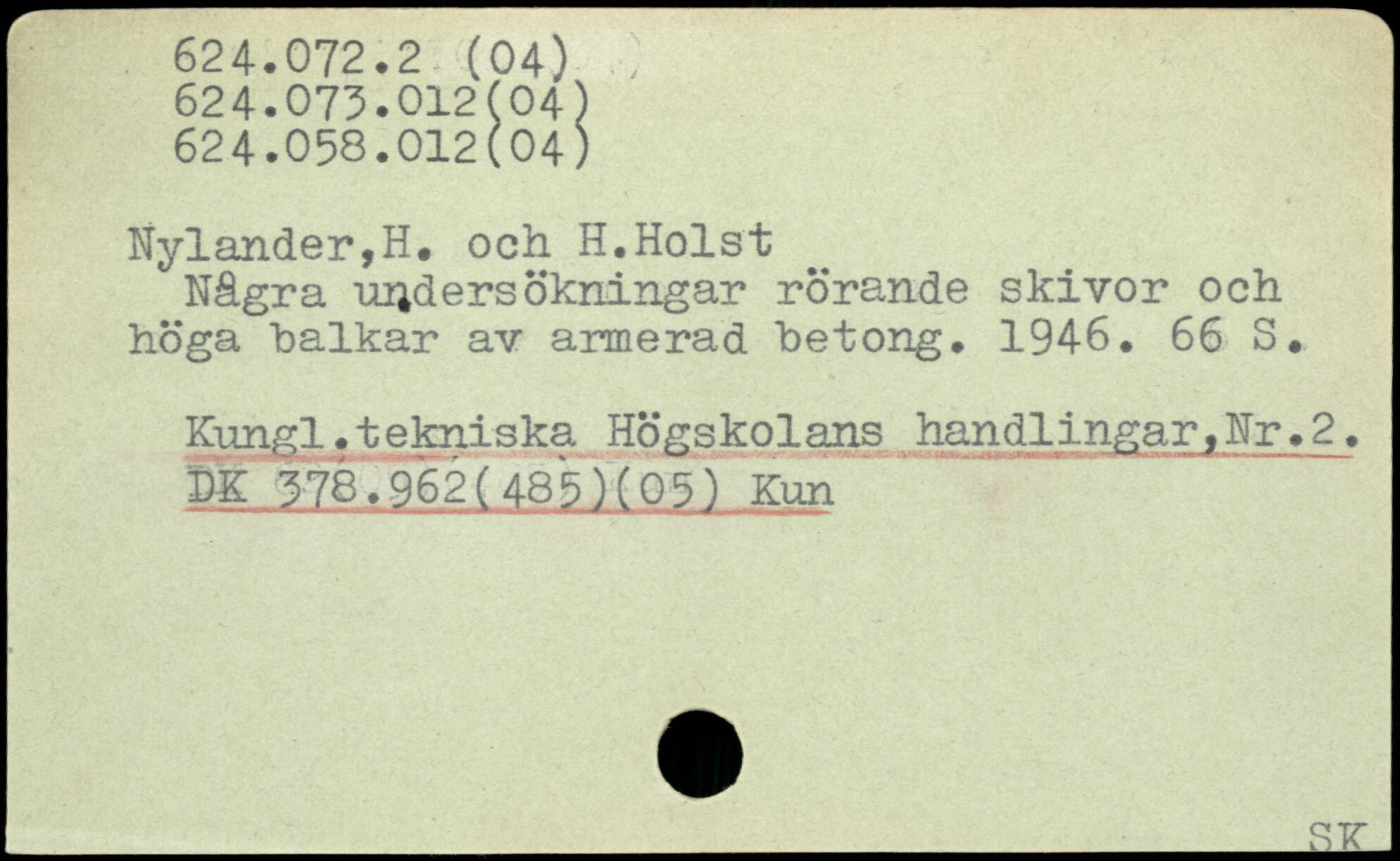 Några undersökningar rörande skivor och höga halkar av armerad "betong. 1946.