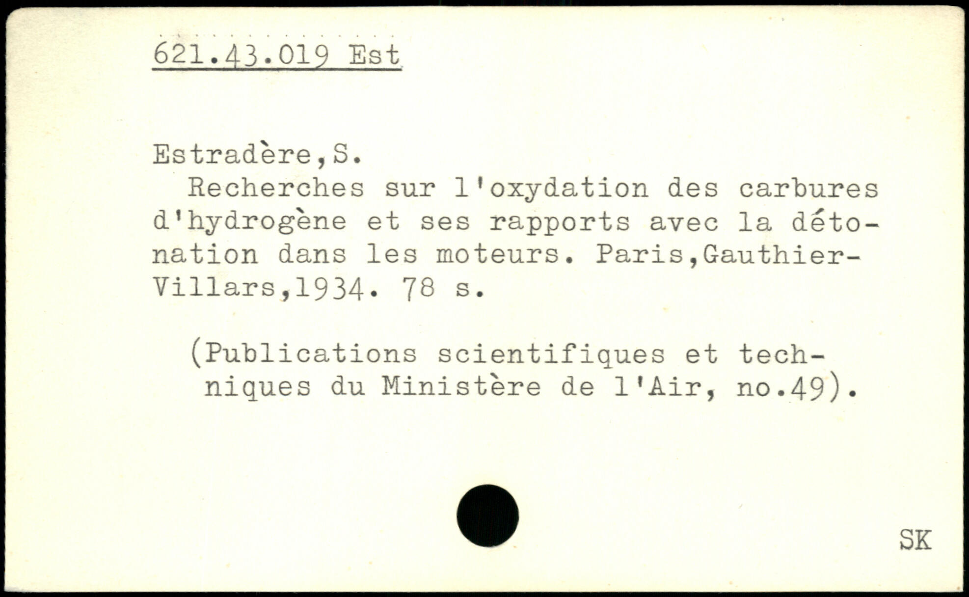 Recherches sur l'oxydation des carbures d'hydrogène et ses rapports avec la détonation dans les moteurs.