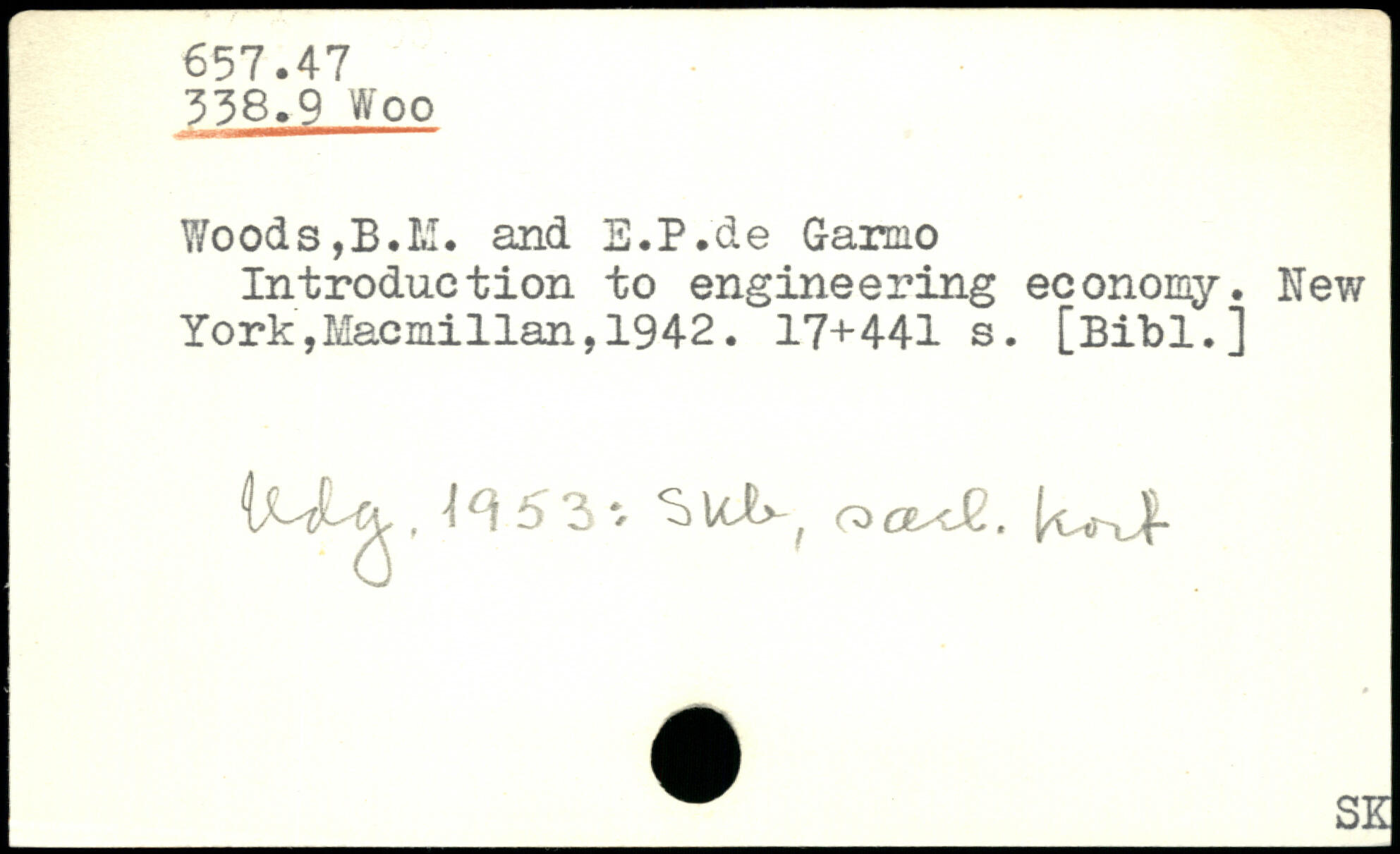 Y/oods,B.M. and E.P.de G-armo Introduction to engineering economy.