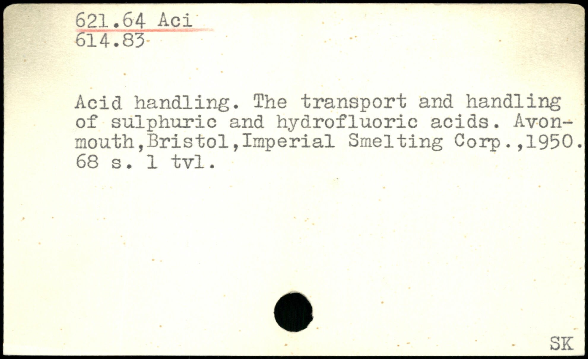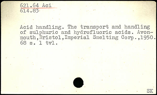 Acid handling. The transport and handling of sulphuric and hydrofluoric acids.