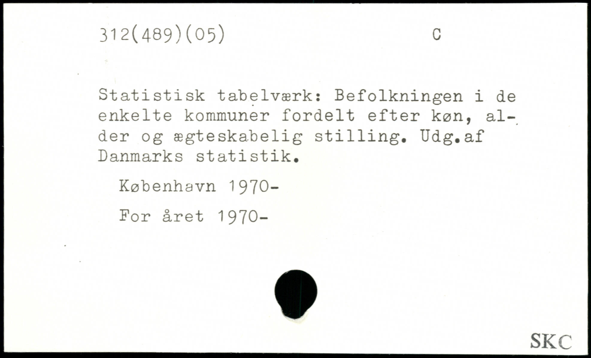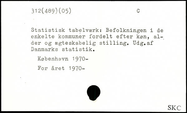 Statistisk tabelværk: Befolkningen i de enkelte kommuner fordelt efter køn, alder og ægteskabelig st1111ng. Udg.af Danmarks statistik.