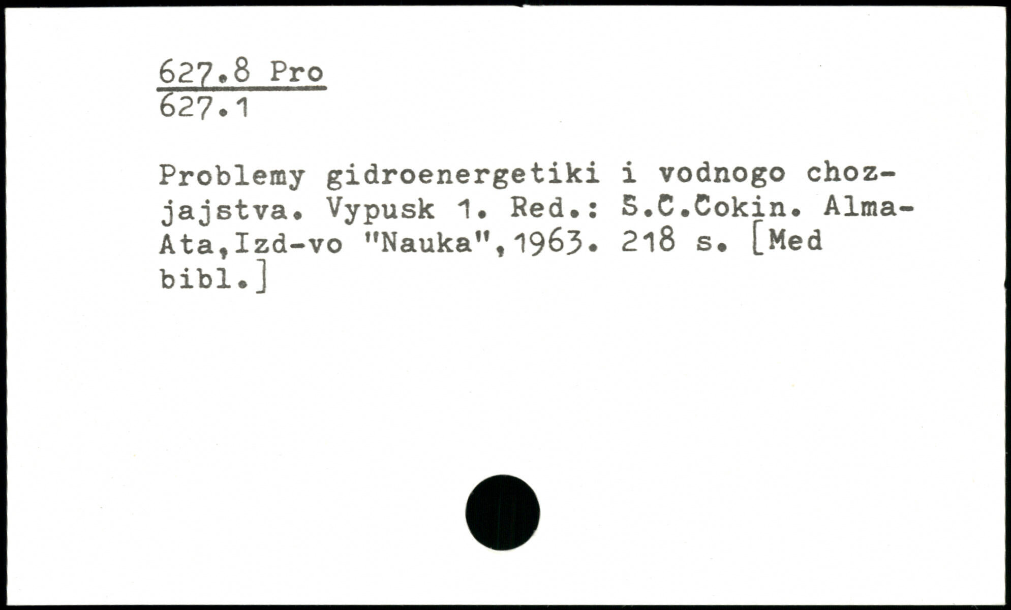 Problemy gidroenergetiki i vodnogo choz-jajstva. Vypusk 1. Red.: S.C.Cokin. Alma-Ata, Izd-vo ’'Nauka”, 1963. 2l