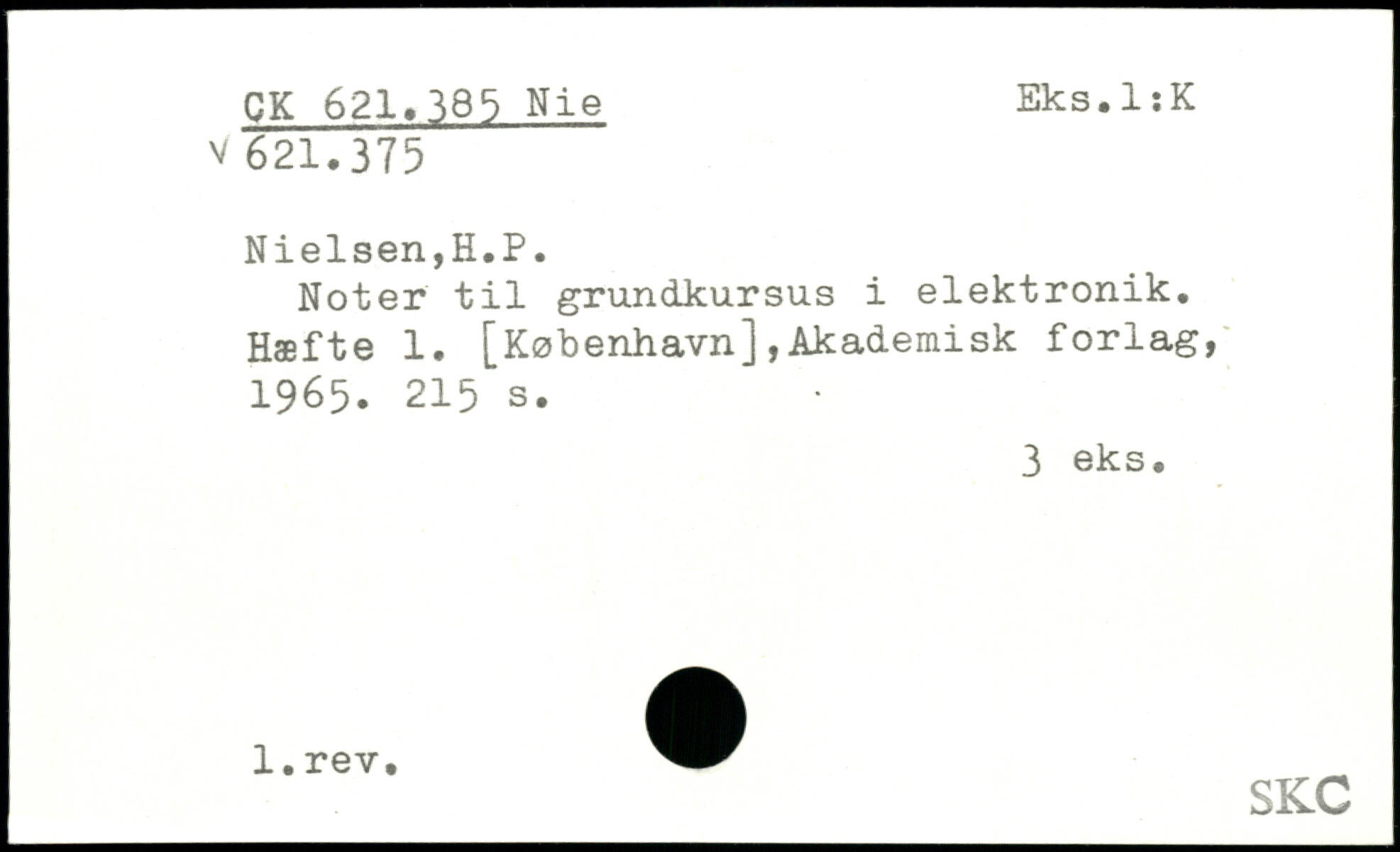 Noter til grundkursus i elektronik. Hæfte 1. [København],Akademisk forlag, 1965.