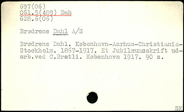 Brødrene Dahl A/S Brødrene Dahl. Købenliavn-Aarhus-Christiania-Stockholm. 1867-1917. Et Jubilæumsskrift ud-arb.ved C.Bratli.