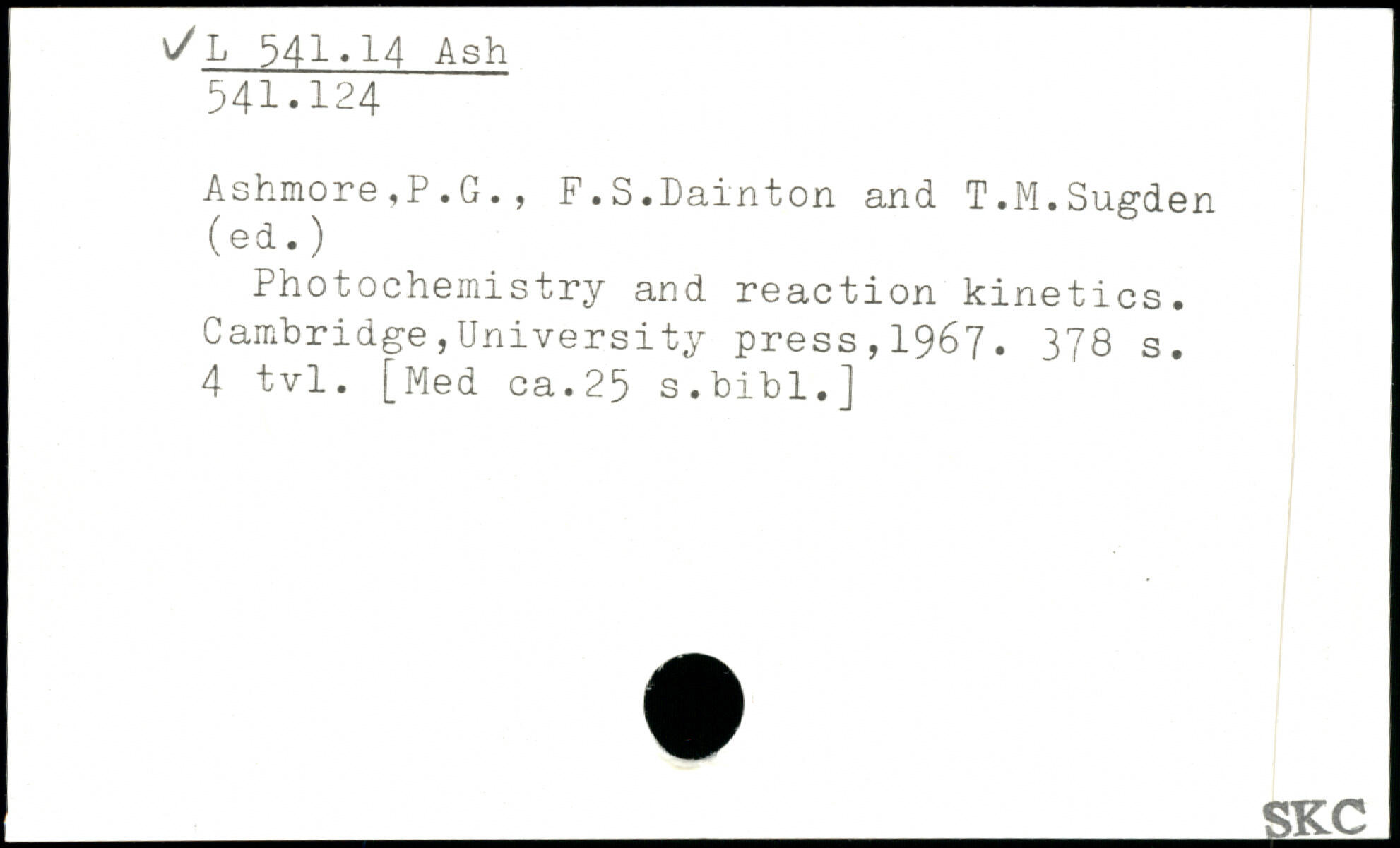 Forfatter: P.G. Ashmore, F.S. Dainton, T.M. Sugden