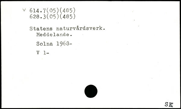 Statens naturvårdsverk. Meddelande. Solna 1968- V 1-