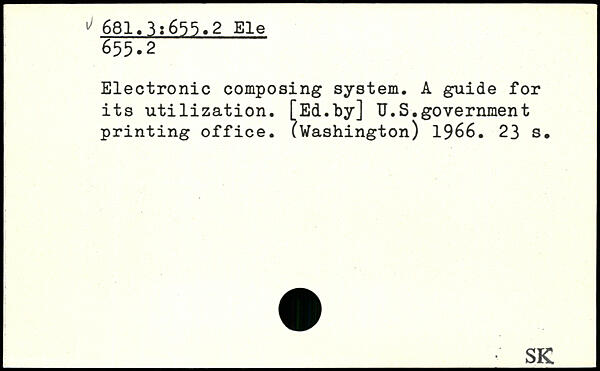Electronic composing system. A guide for its utilization. [Ed.by] U.S.government printing office. (Washington) 1966.