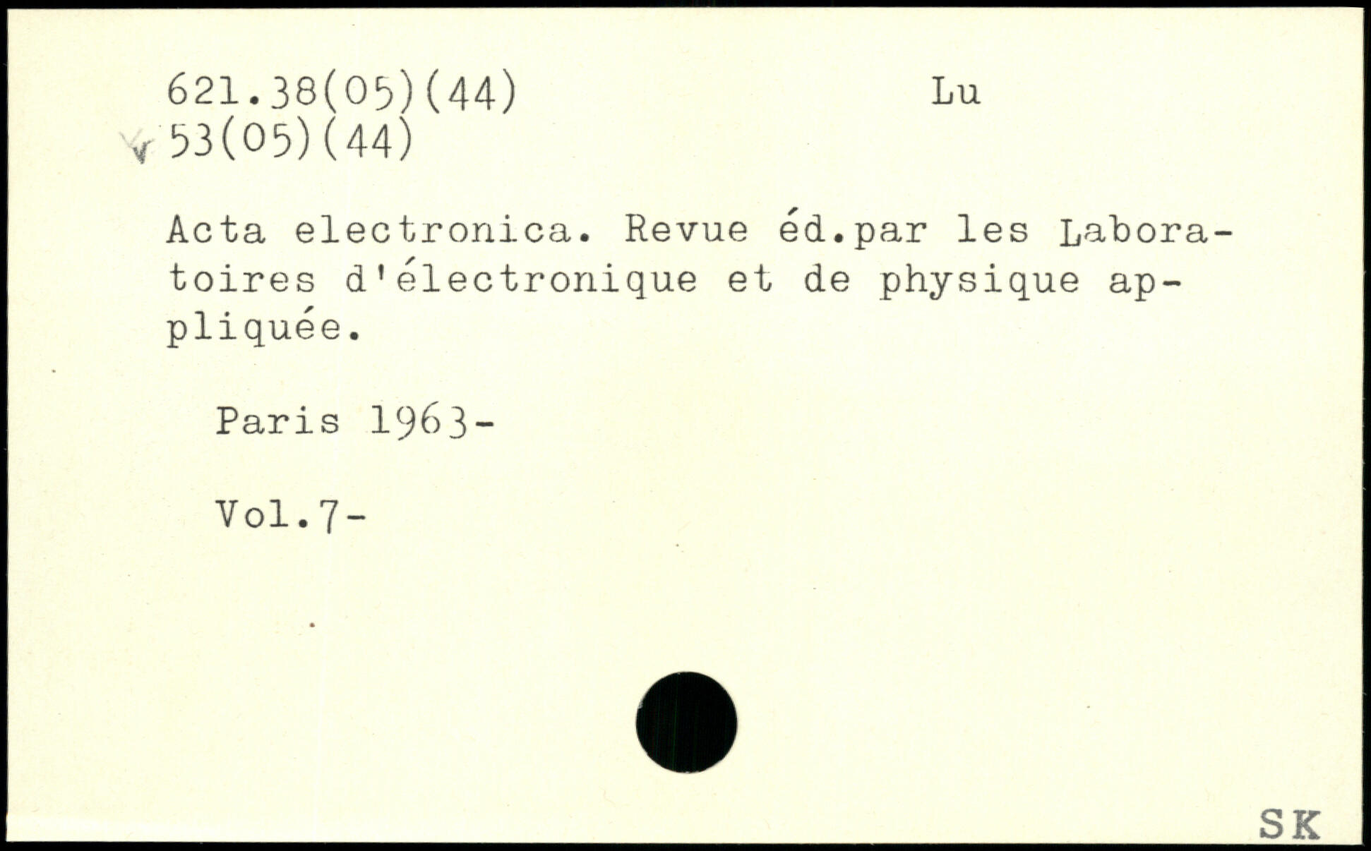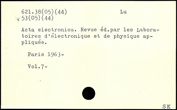 Acta electronica. Revue éd.par les Laboratoires d’électronique et de physique appliquée.