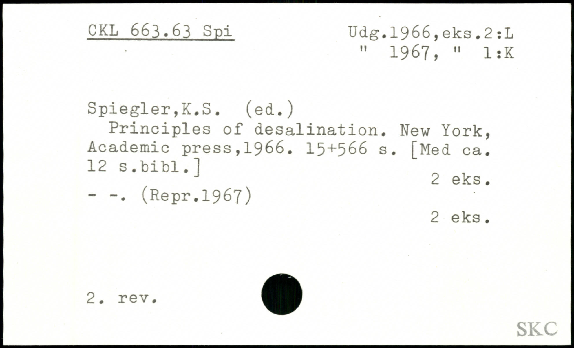 " 1967, " 1:K Spiegler,K.S. (ed.) Principles of desalination.