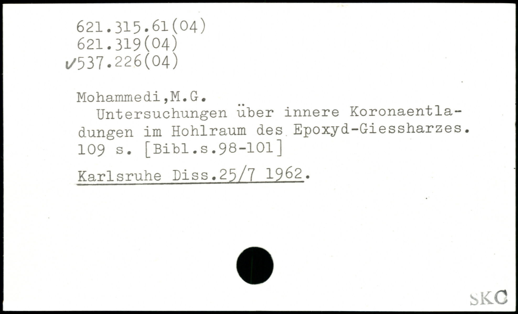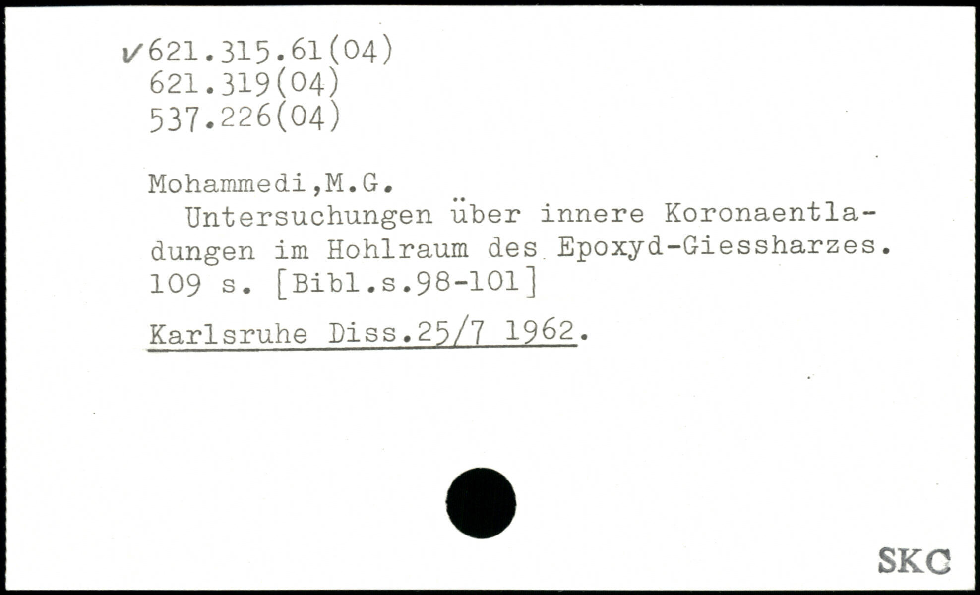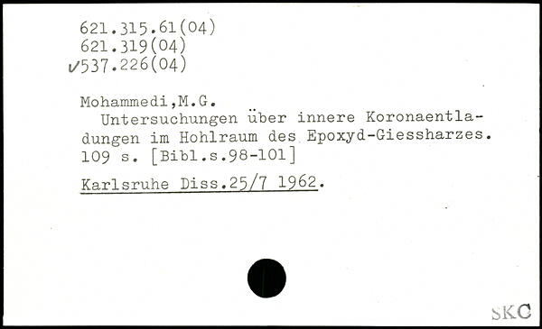 Untersuchungen über innere Koronaentladungen im Hohlraum des Epoxyd-Giessharzes.