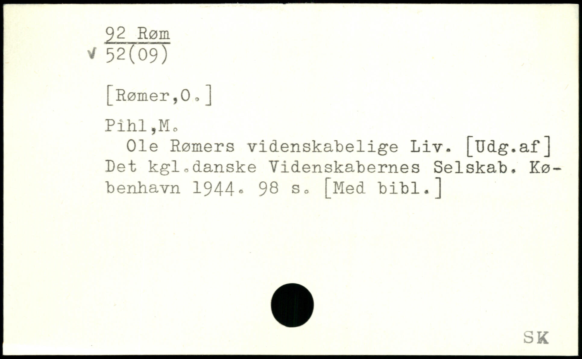 Ole Rømers videnskabelige Liv. [iJdg.af] Det kglo danske Videnskabernes Selskab.