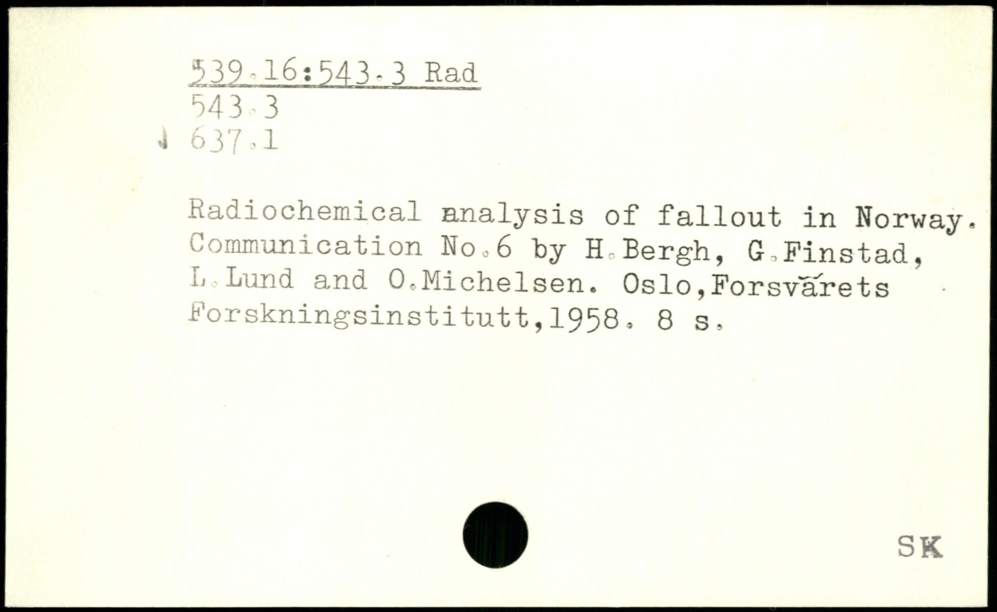Radiochemical analysis of fallout in Norway. Communication No,6 by H0Bergh, G.Finstad, L Lund and O.Michelsen.