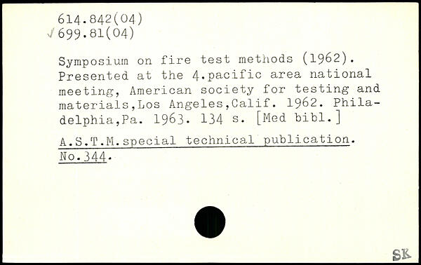 Symposium on fire test methods (1962). Presented at the 4.pacific area national meeting, American society for testing and materials,Los Angeles,Calif. 1962. Phila delphia,Pa. 1963.