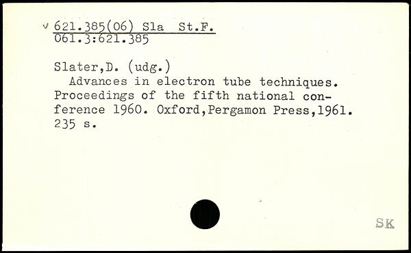 Advances in electron tube techniques. Proceedings of the fifth national conference 1960.
