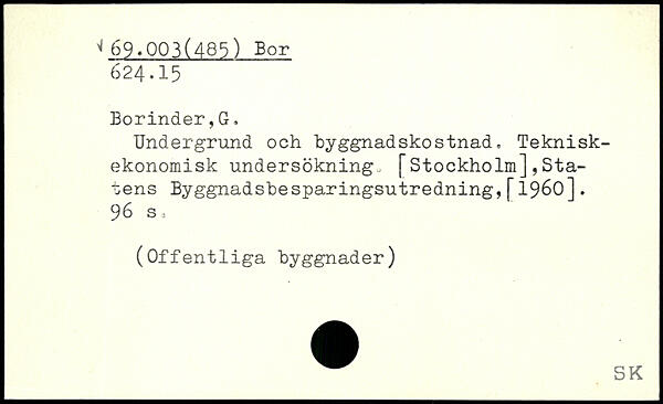 Undergrund och byggnadskostnad. Tekniskekonomisk undersökning.