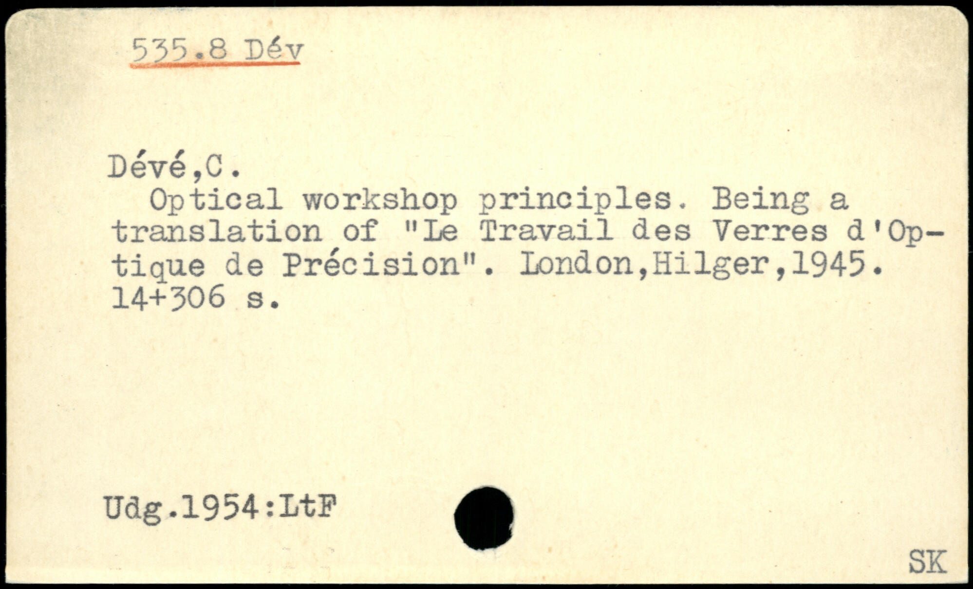 Optical workshop principles- Being a translation of "Le Travail des Verres d'Op-tique de Précision".