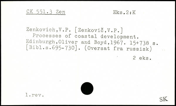 Zenkovich,V.P. [Zenkovic,V.P.] Processes of coastal development.