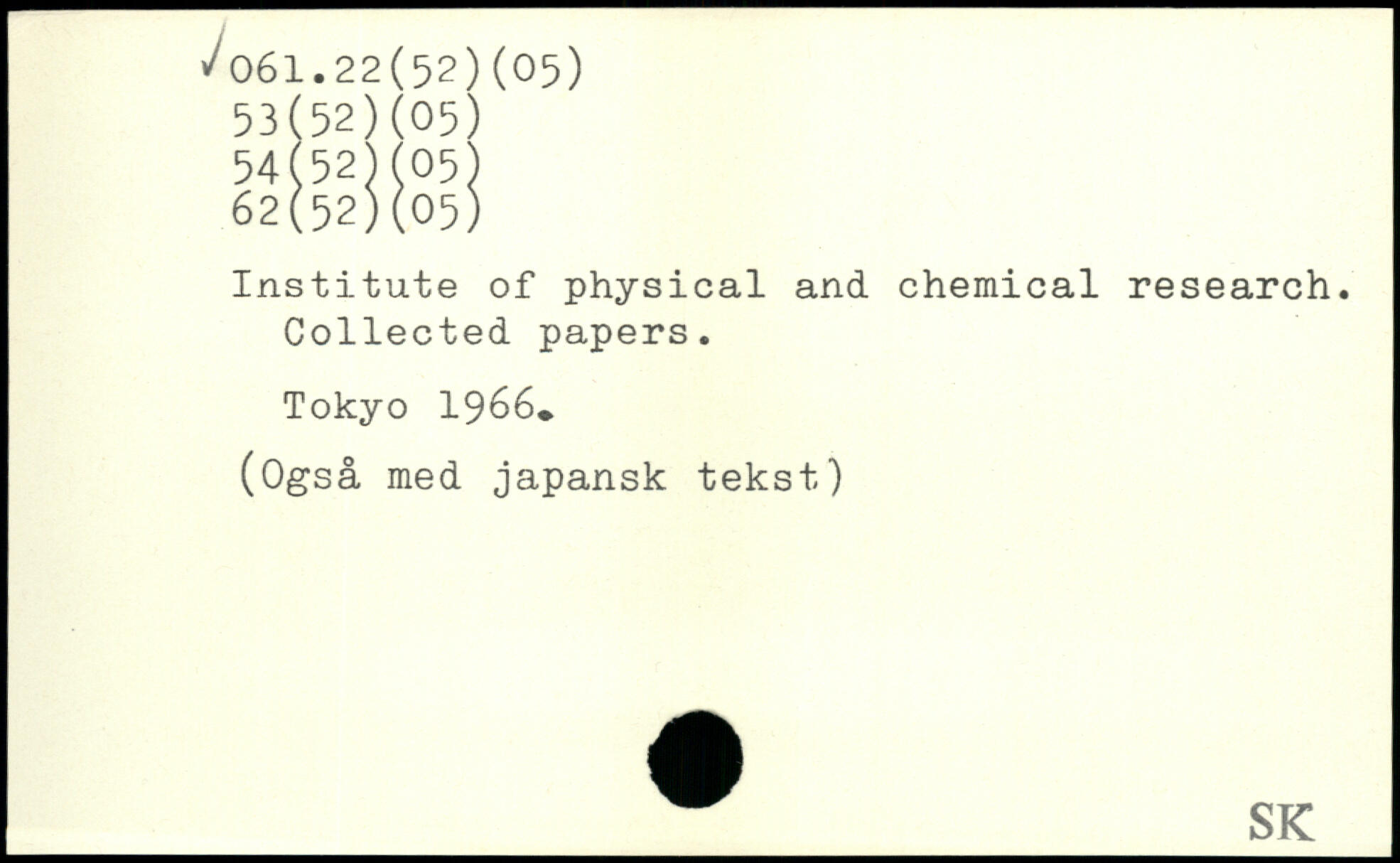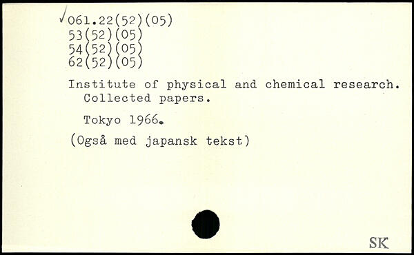 Institute of physical and Chemical research. Collected papers. Tokyo 19é6.