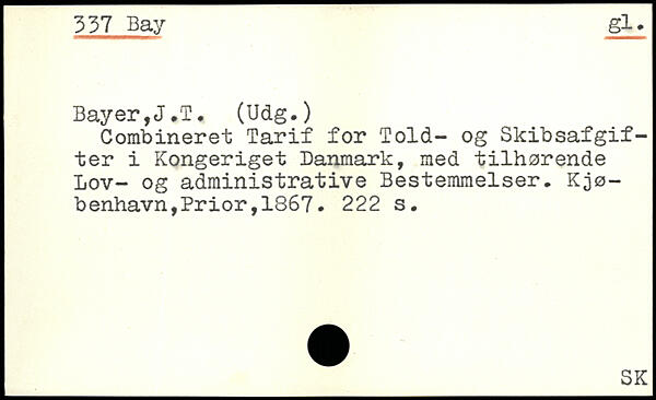 Combineret Tarif for Told- og Skibsafgifter i Kongeriget Danmark, med tilhørende Lov- og administrative Bestemmelser.