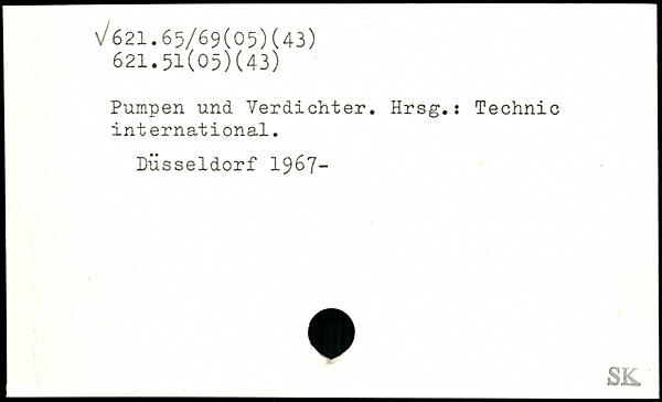 Pumpen und Verdichter. Hrsg.: Technic international. Düsseldorf 1967-