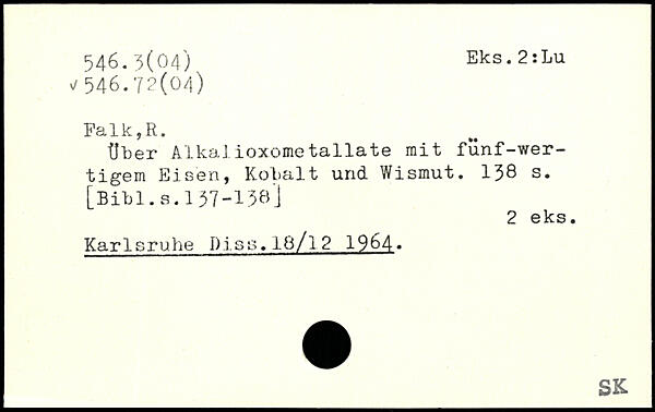 Über Alkalioxometallate mit fünf-wertigem Eisen, Kobalt und Wismut. 13Ö s.