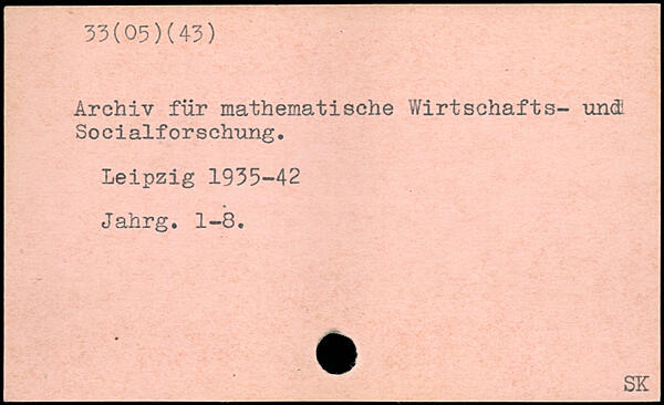 Archiv für mathematische Wirt Schafts- und! Socialforschung