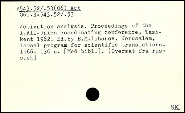Activation analysis., Proceedings of the 1.All-Union cooedinating conference, Tashkent 1962. Ed.by E.M.Lobanov. Jerusalem, Israel program for scientific translations, 1966.