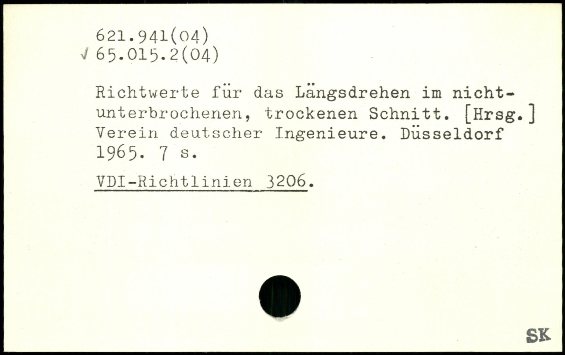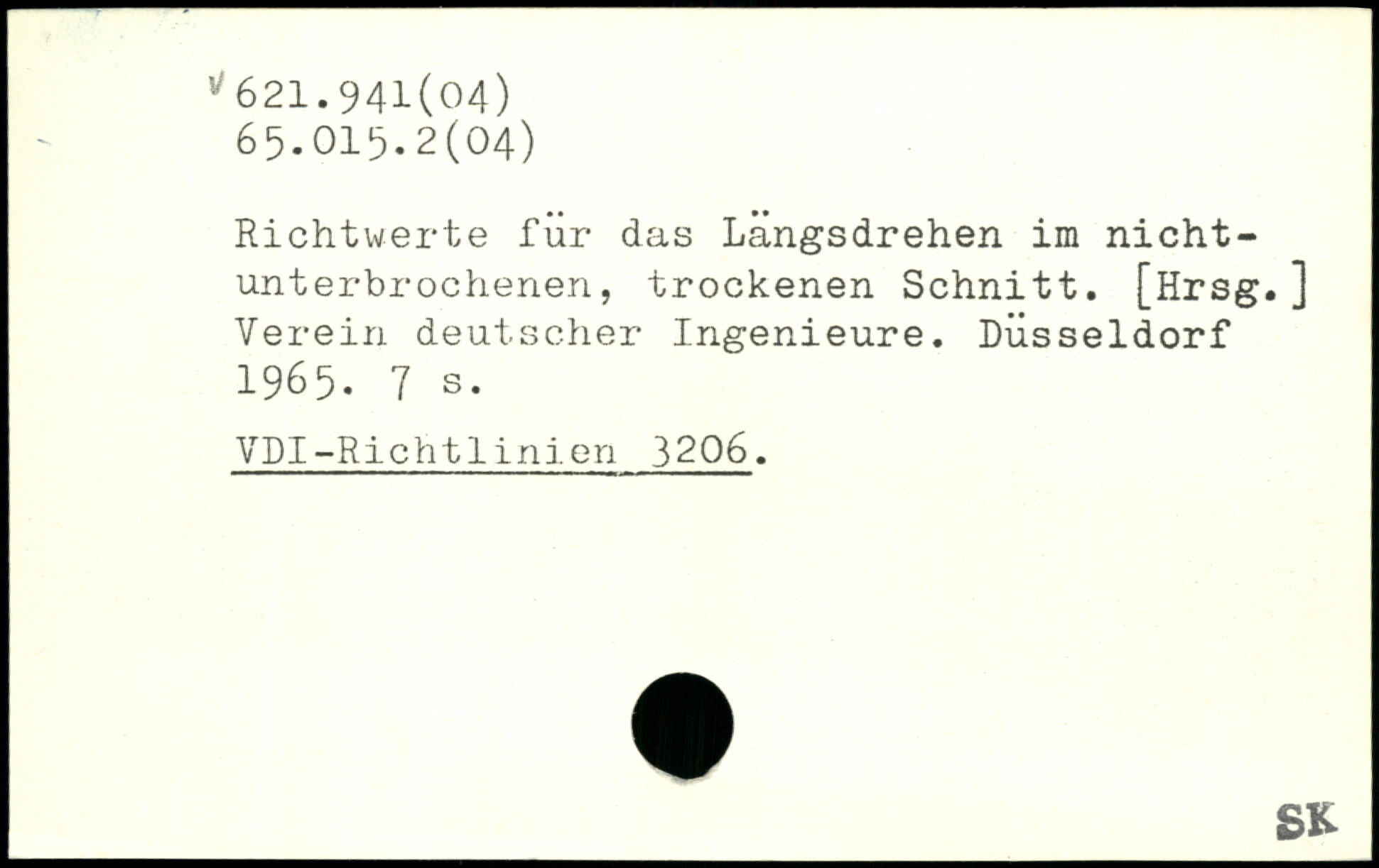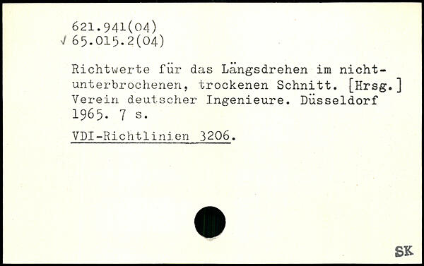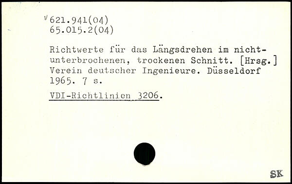 Richtwerte für das Längsdrehen im nicht-unterbrochenen, trockenen Schnitt. [Hrsg.] Verein deutscher Ingenieure. Düsseldorf 1965.