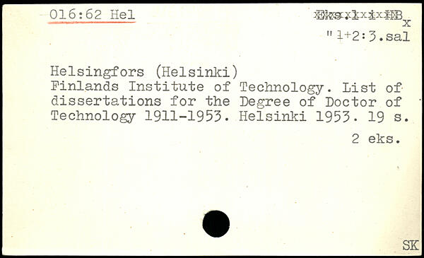 Finlands Institute of Technology. List of dissertations for the Degree of Doctor of. Technology 1911-1953.