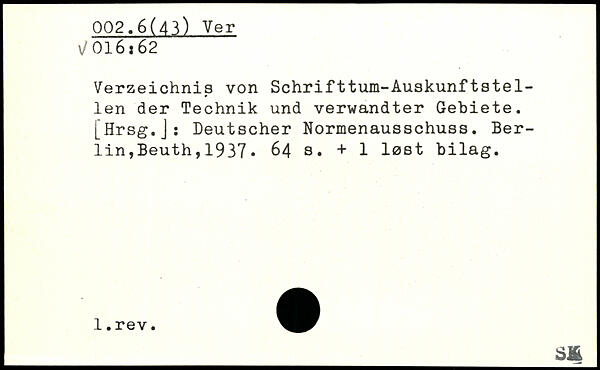 Verzeichnis von Schrifttum-Auskunftateilen der Technik und verwandter Gebiete. [Hrsg.]: Deutscher Normenausschuss.