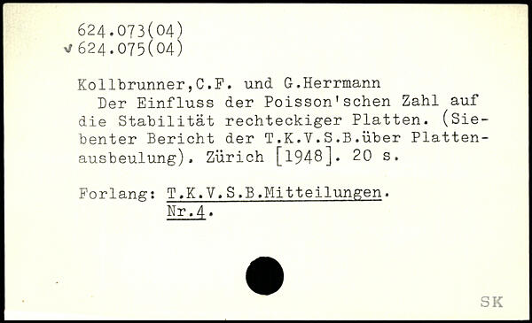 Der Einfluss der Poisson'sehen Zahl auf die Stabilität rechteckiger Platten. (Siebenter Bericht der T.K.Y.S.B.über Plattenausbeulung). Zürich [l94ö].