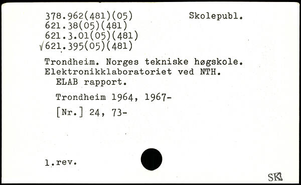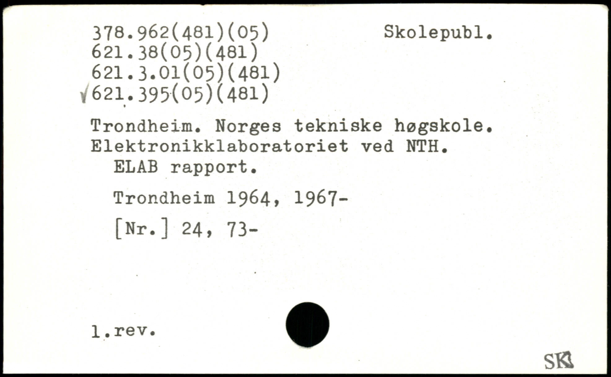 Trondheim. Norges tekniske høgskole. Elektronikklaboratoriet ved NTH. ELAB rapport.