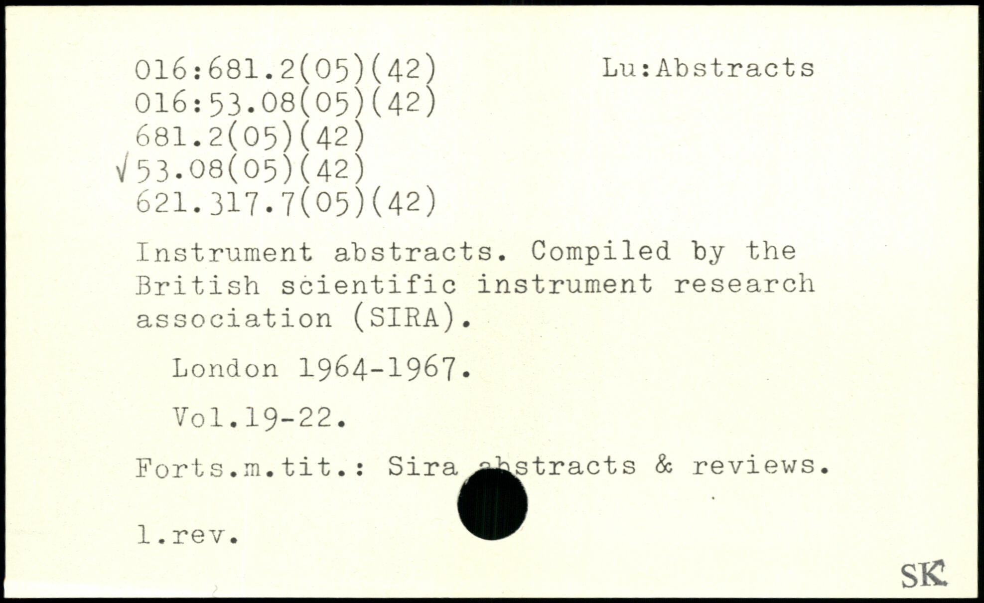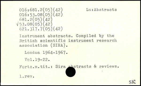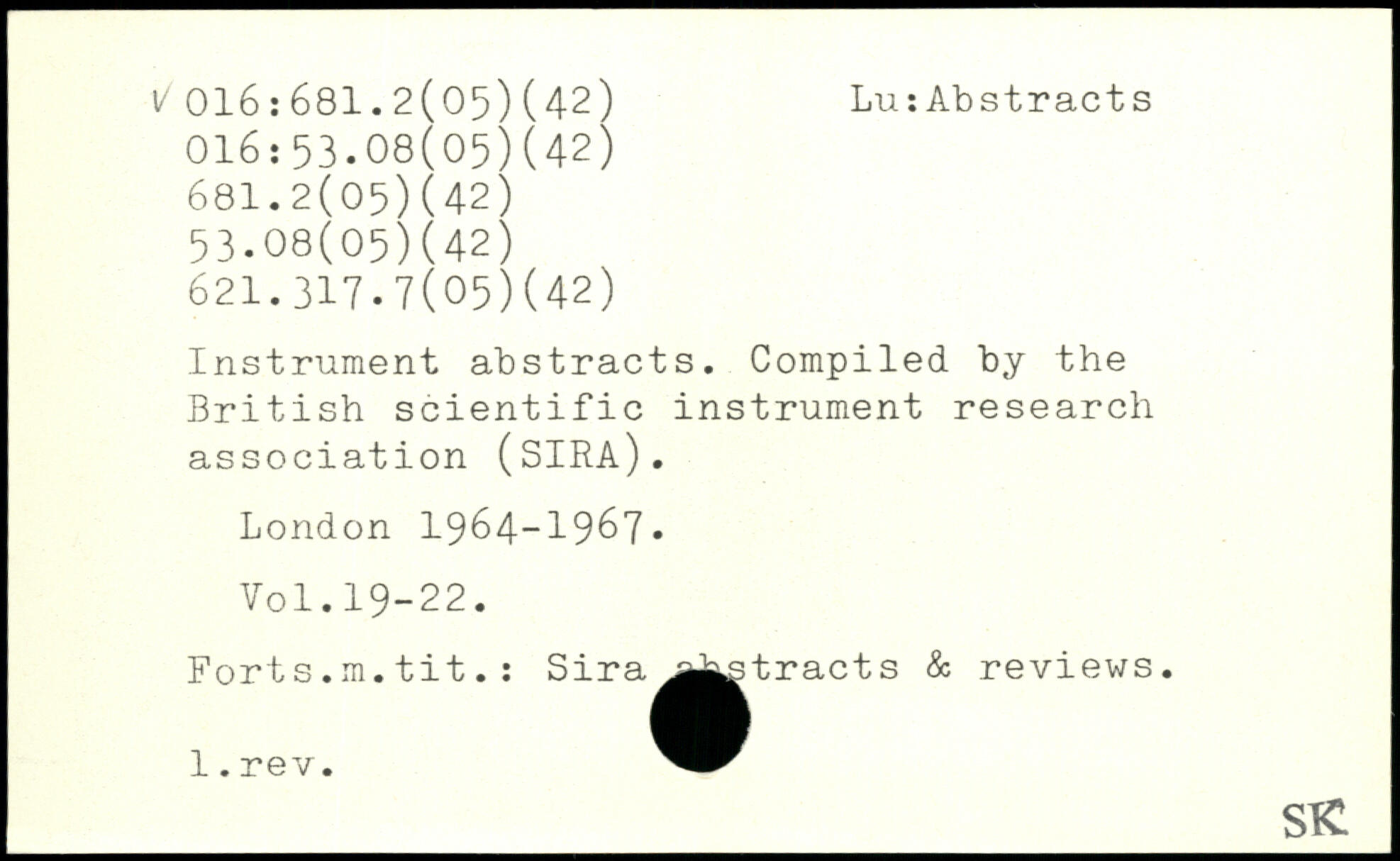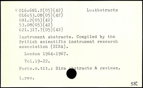 Instrument abstracts. Compiled by the British scientific instrument research association (SIRA).