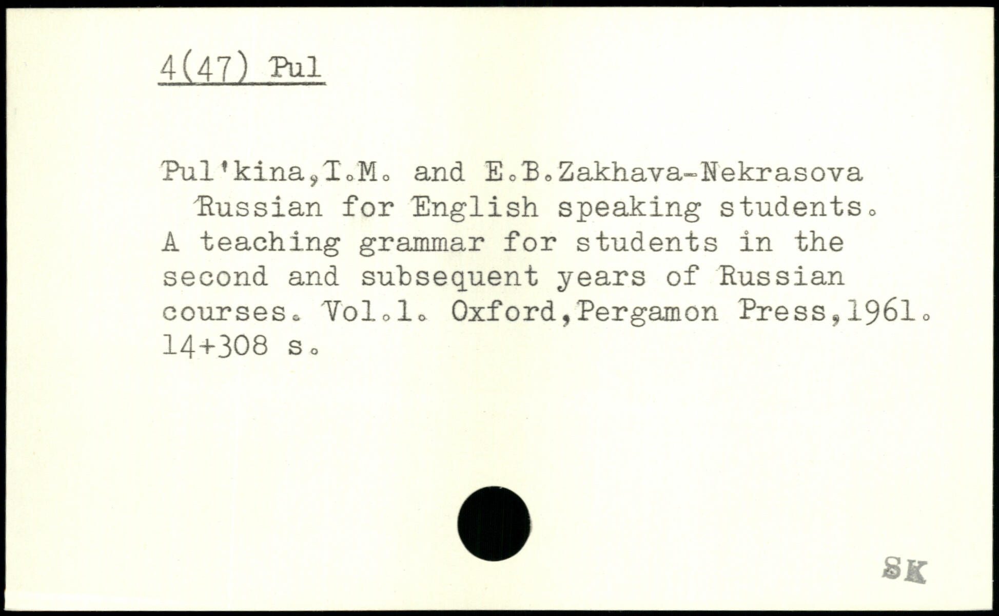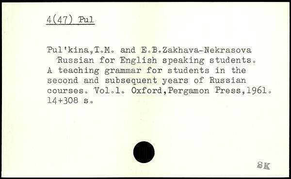 Pul,kina,ToMe and E.E,Zakhava-Rekrasova Russian for English speaking students, A teaching grammar for students in the second and subsequent years of Russian courses..