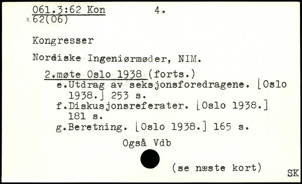 Nordiske Ingeniørmøder, NIM. 2.møte Oslo 1938 (forts.) e. Utdrag av seksjonsforedragene. [Oslo 1938.]