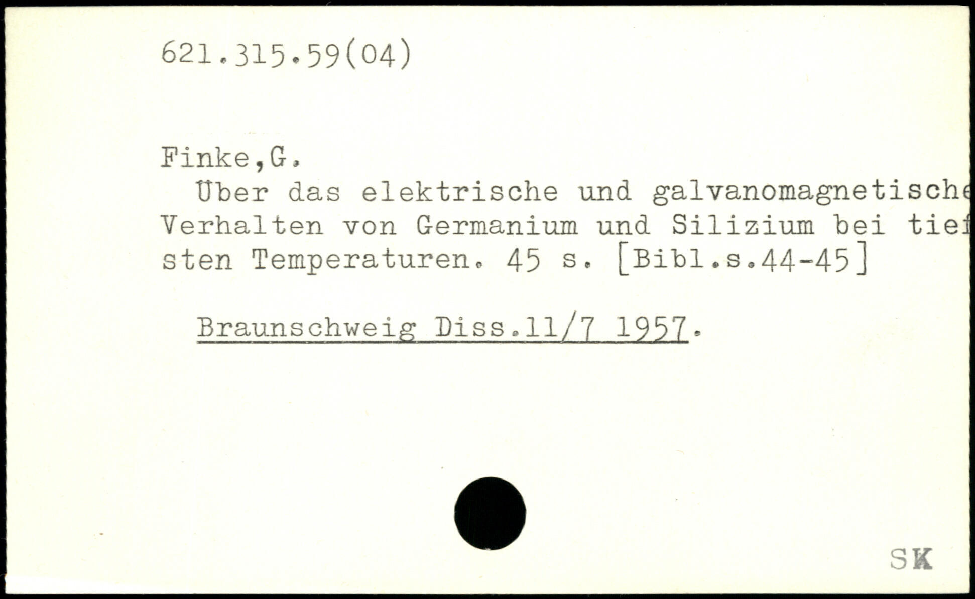 Uber das elektrische und galvanomagnetisch< Verhalten von Germanium und Silizium bei tied sten Temperaturen.