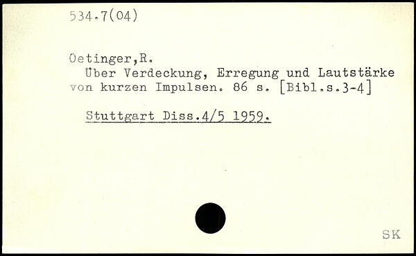 Uber Verdeckung, Erregung und Lautstärke von kurzen Impulsen.