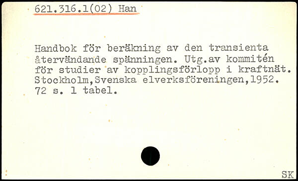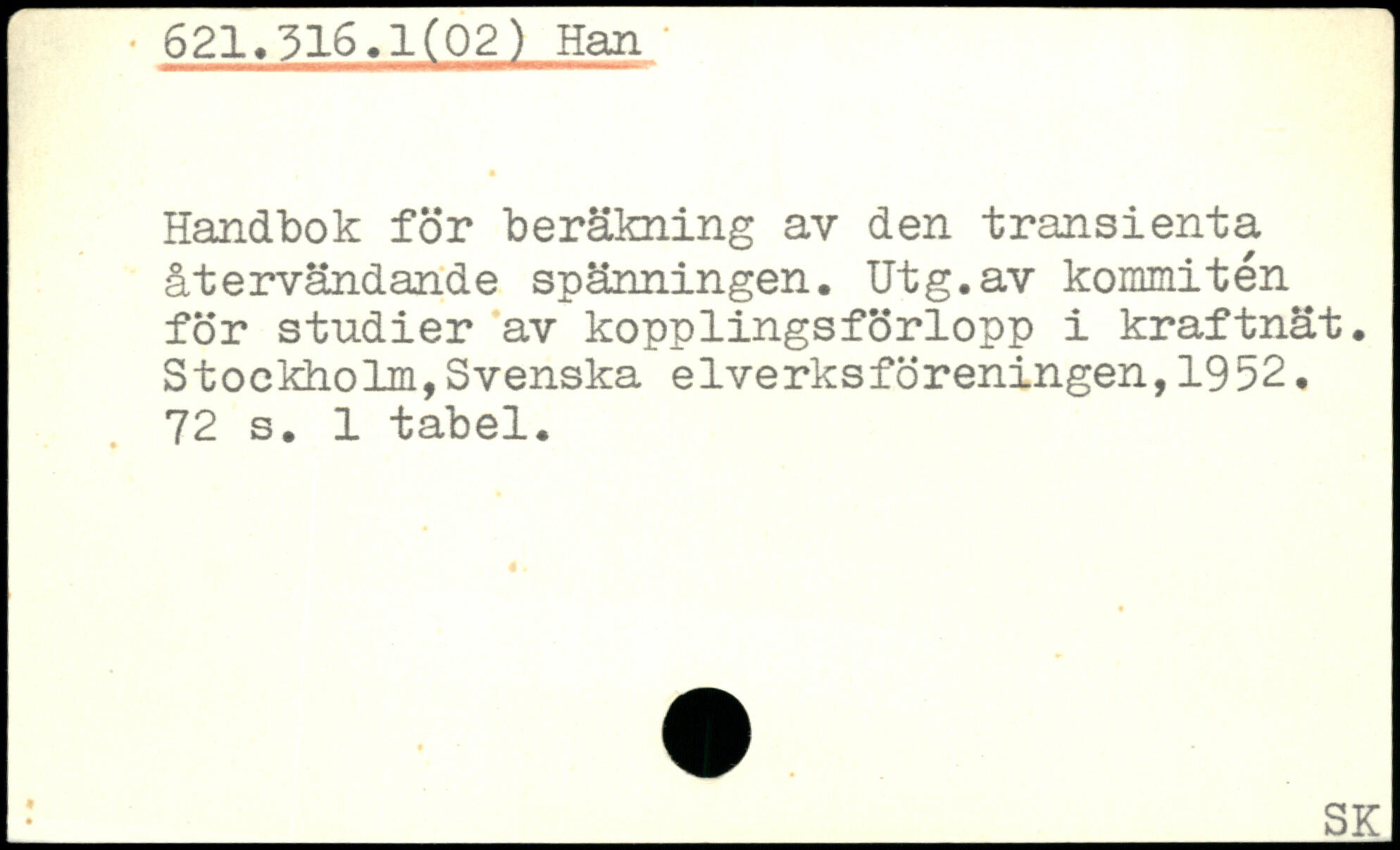 Handbok för beräkning av den transienta återvändande spänningen. Utg.av kommitén för studier av kopplingsförlopp i kraftnät.