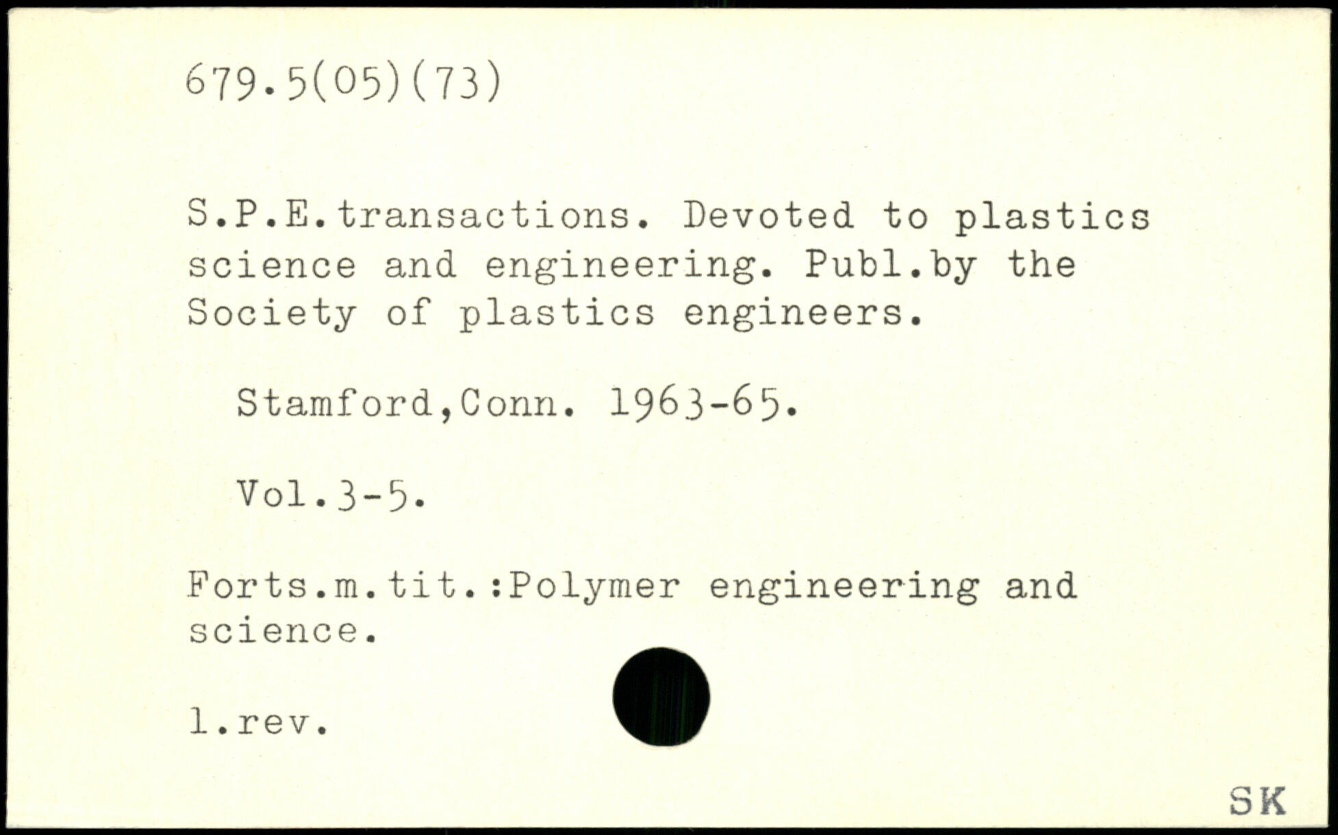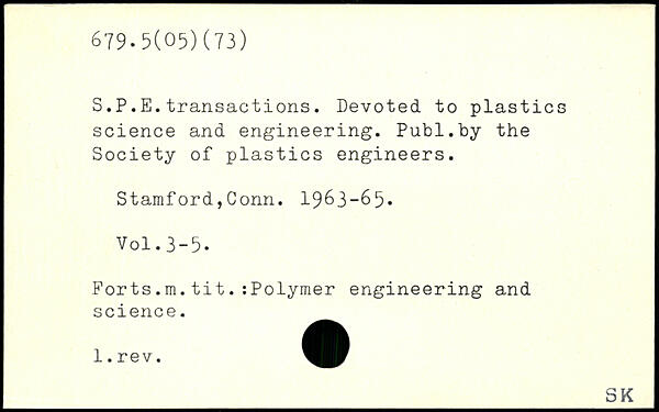 S.P.E.transactions. Devoted to plastics science and engineering.