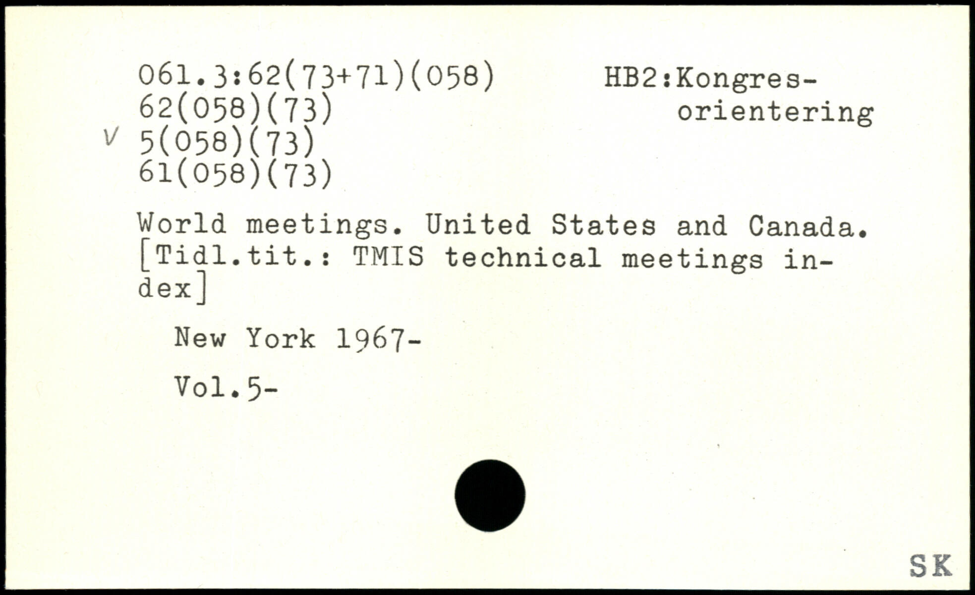 World meetings. United States and Canada. [Tidl.tit.: TMIS technical meetings index]