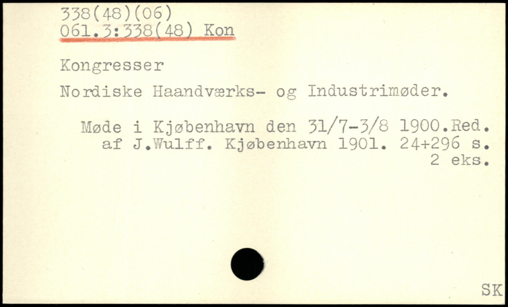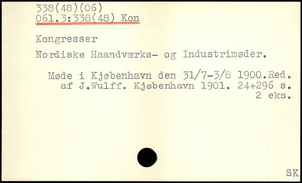 Kordiske Haandværks- og Industrimøder. Møde i Kjøbenhavn den 31/7-3/8 1900.Red. af J.Wulff. Kjøbenhavn 1901.
