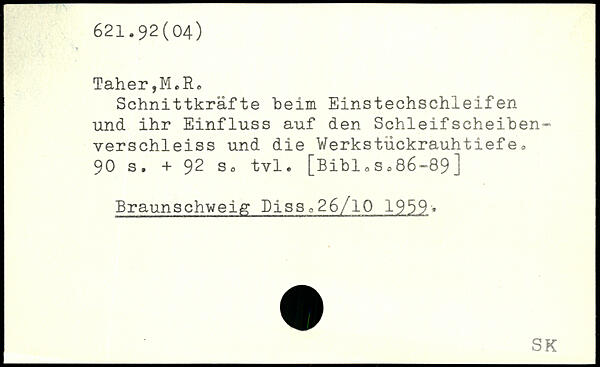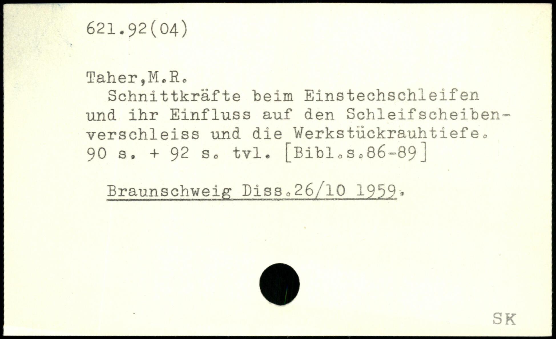 Schnittkräfte beim Einstechschleifen und ihr Einfluss auf den Schleifscheiben, verschleiss und die Werkstückrauhtiefe
